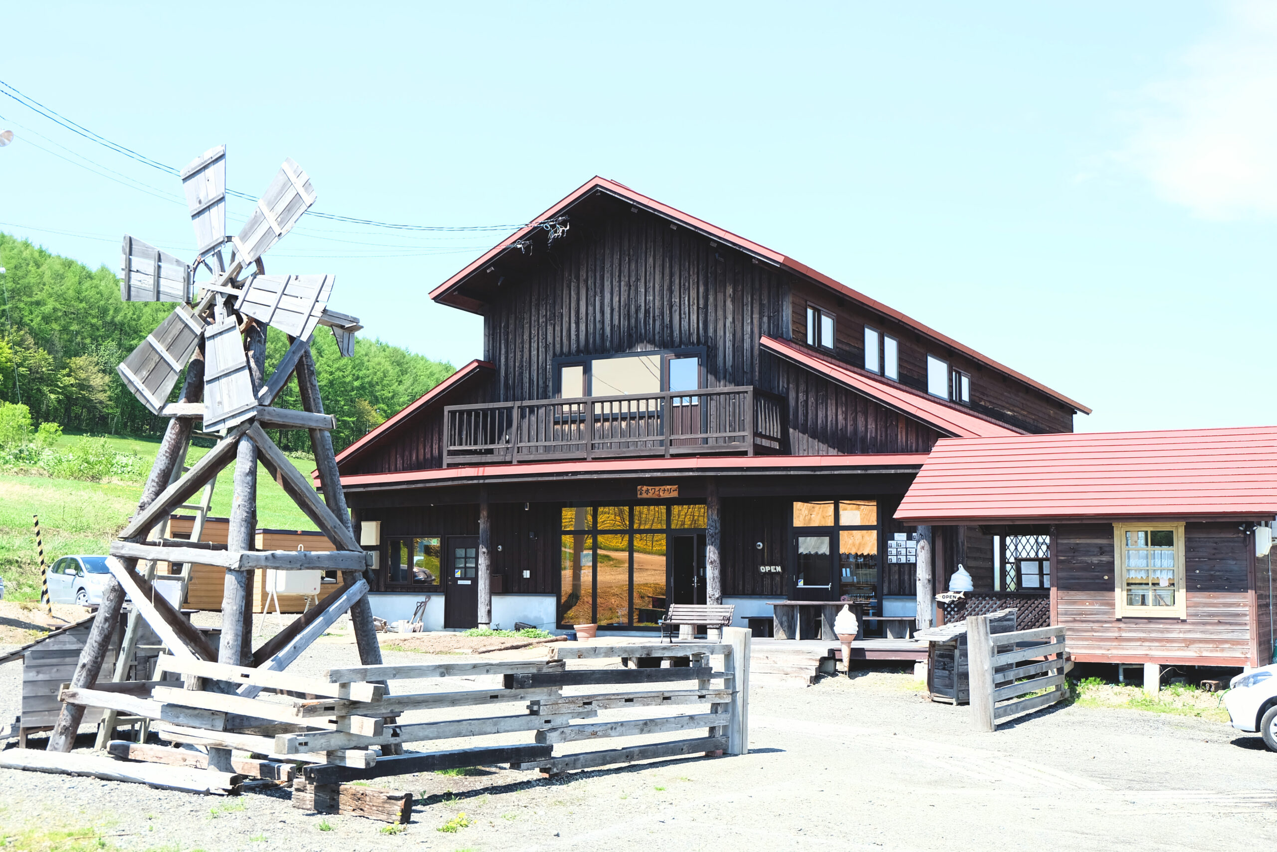 風光明媚な丘陵地で、雪深い冬の岩見沢を想起させる冷涼感のある味わいのクラフトワインを作っています。ワイン用ぶどうのソースを使ったソフトクリームも味わえるので、お酒が飲めない人もOK。